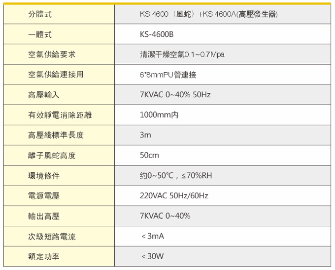● 需要配壓縮空氣和高壓電源供應器才可使用;