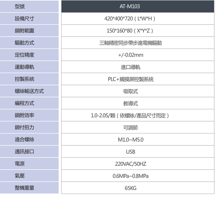 單頭單平臺結構,只鎖附同種規格、同扭距的螺絲